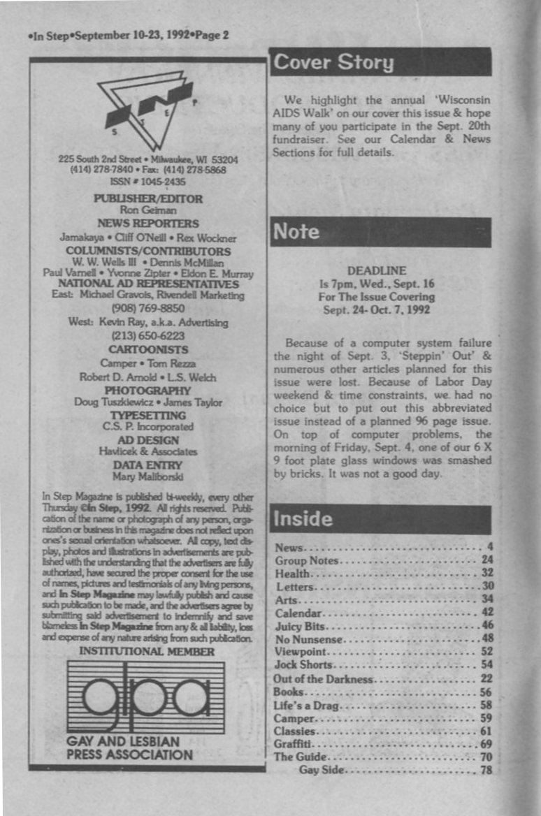 3rd Annual Wisconsin AIDS Walk; Shooting near This Is It.