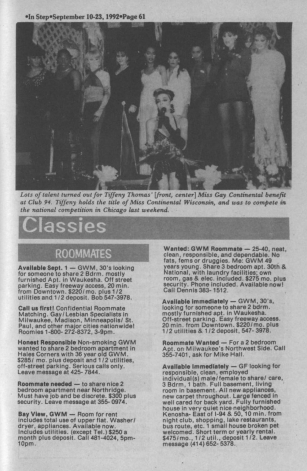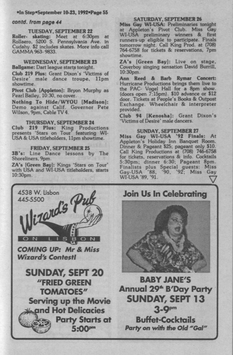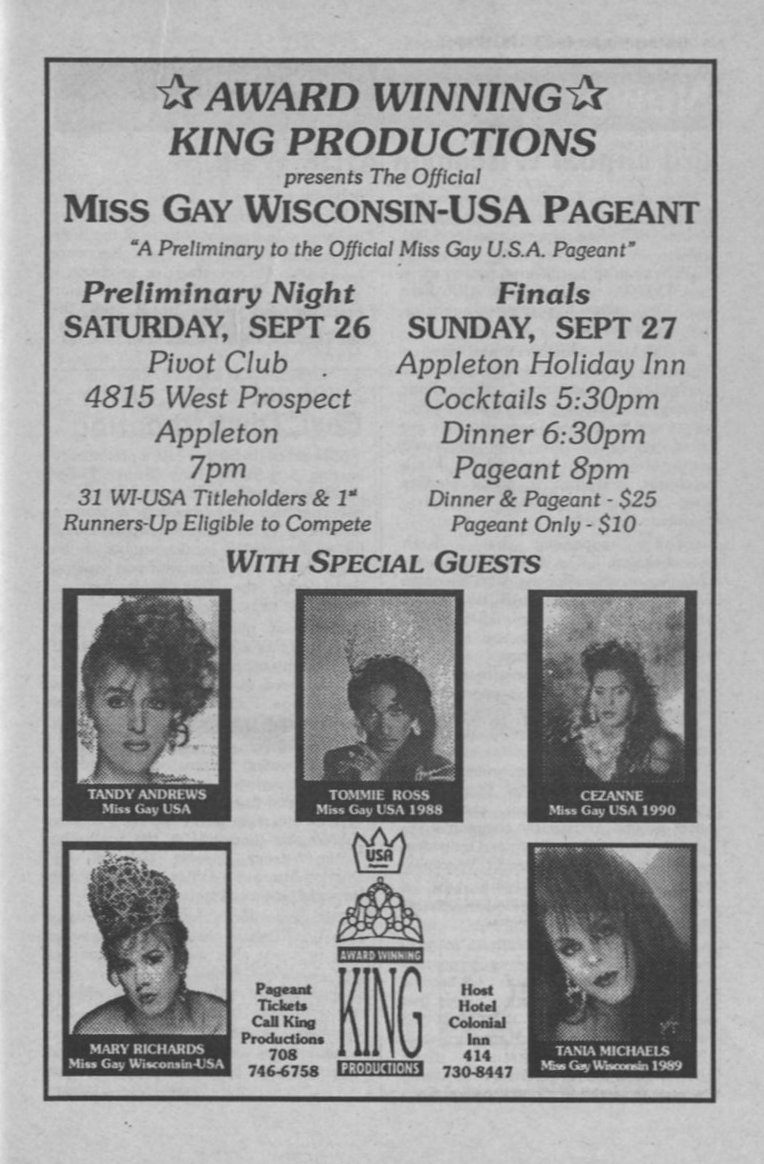 Ad: King Productions, Miss Gay Wisconsin-USA Pageant, Pivot Club