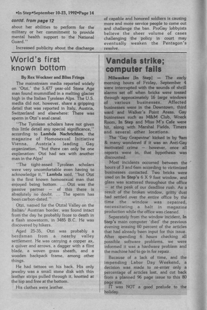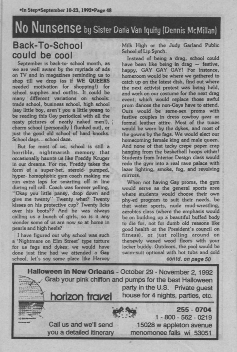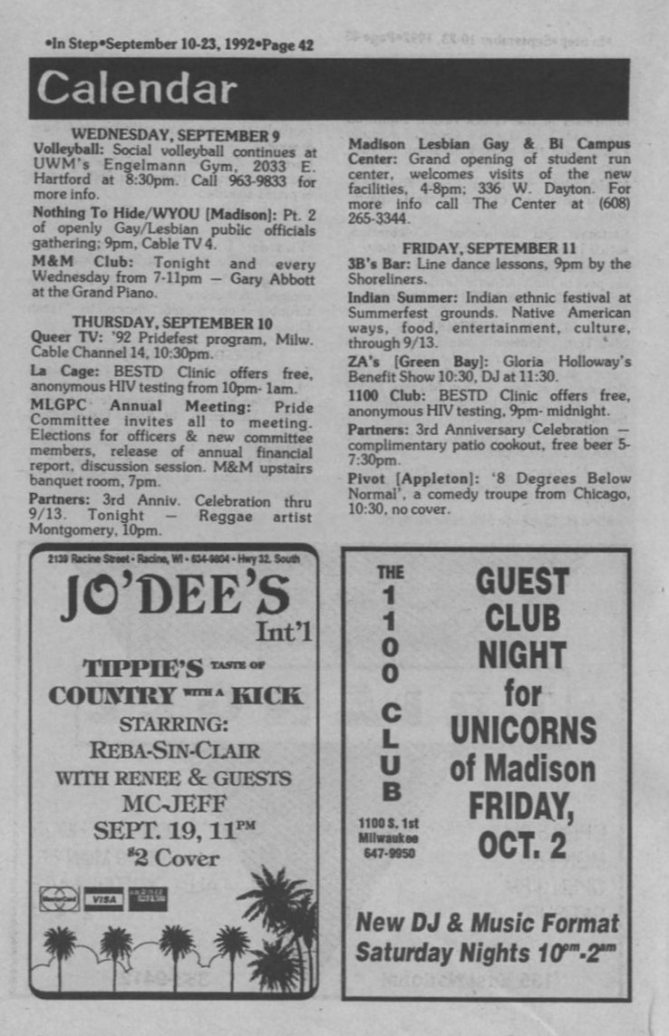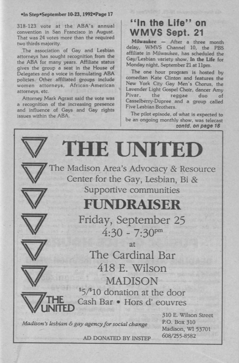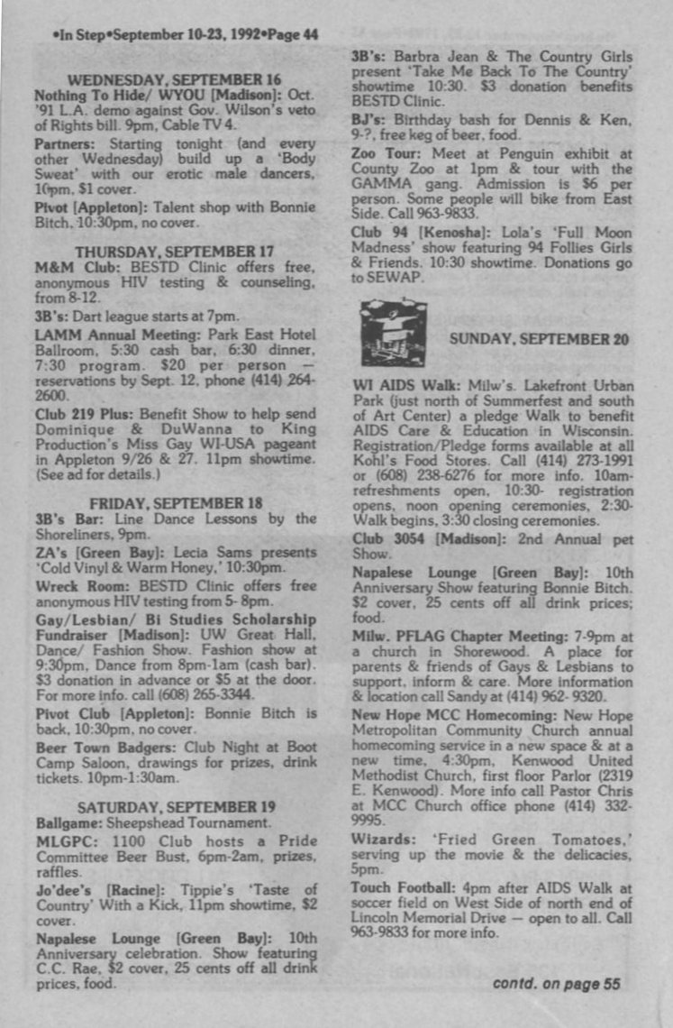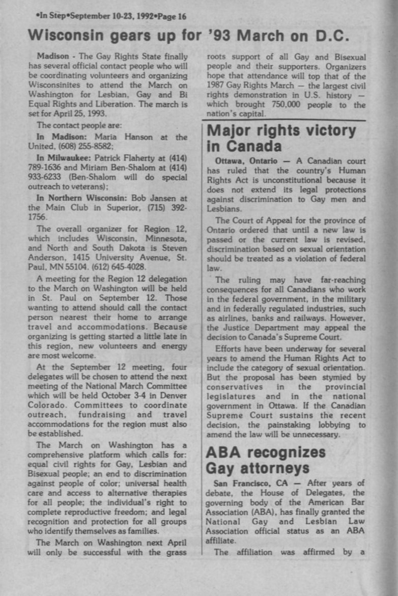 Wisconsin gears up for 1993 March on D.C. Gay rights Canada. ABA recognizes Gay Attorneys.