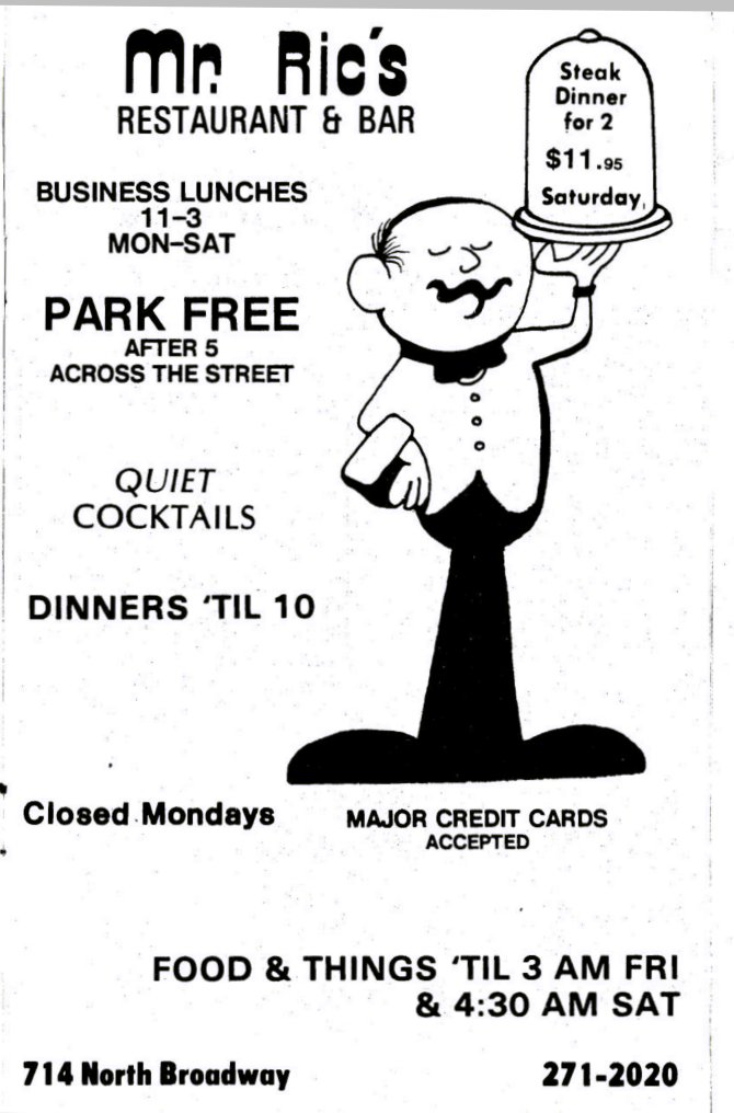Advertisement for Mr. Ric's Restaurant