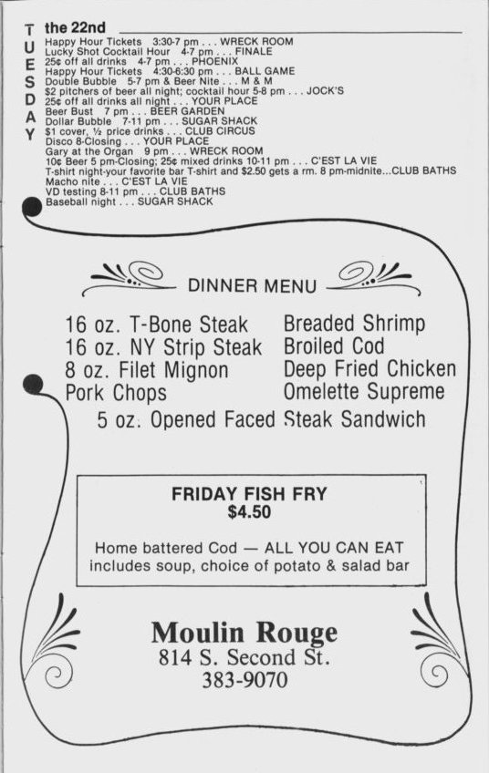 Menu for Moulin Rouge bar & restaurant + Calendar