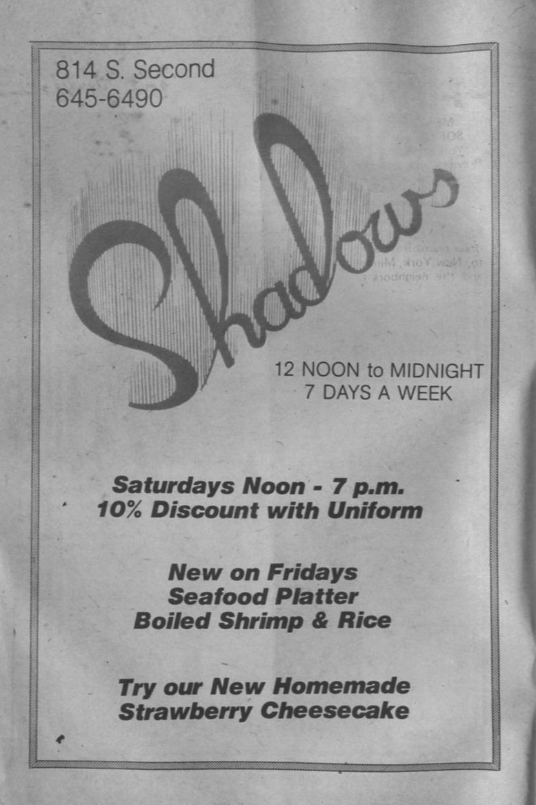 Advert for Shadows bar