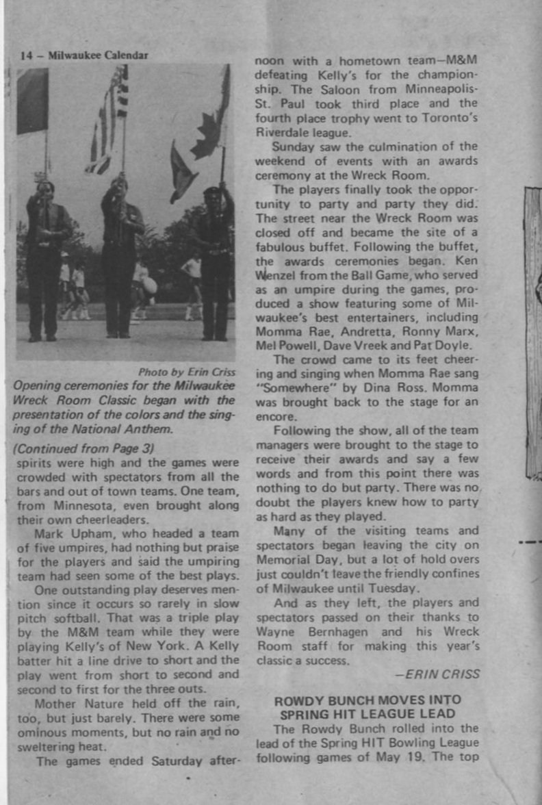 Write-up of the Wreck Room Classic softball games (cont. from page 3)
