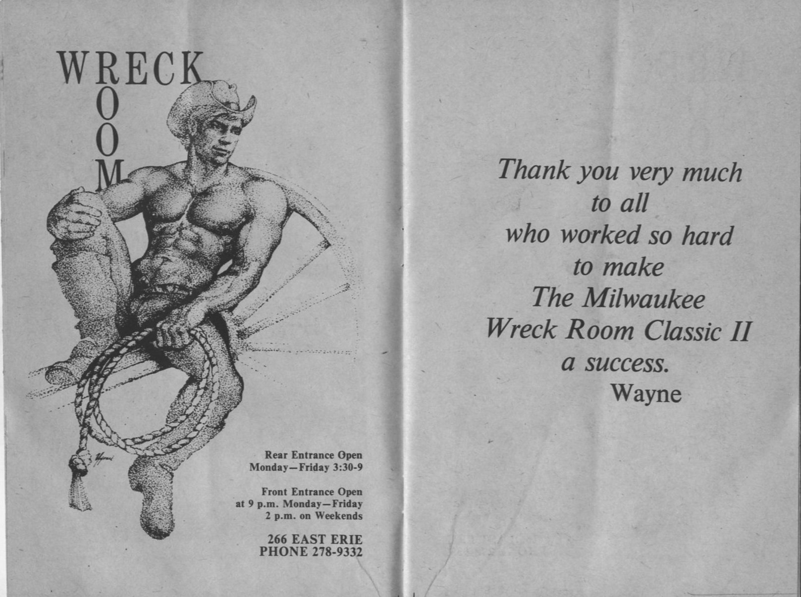Advert for The Wreck Room, incl. Thank You from Wayne (pages 16+17)