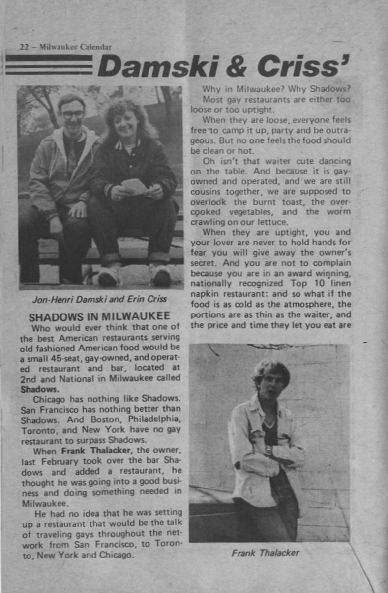 Shadows restaurant, and owner Frank Thalacker