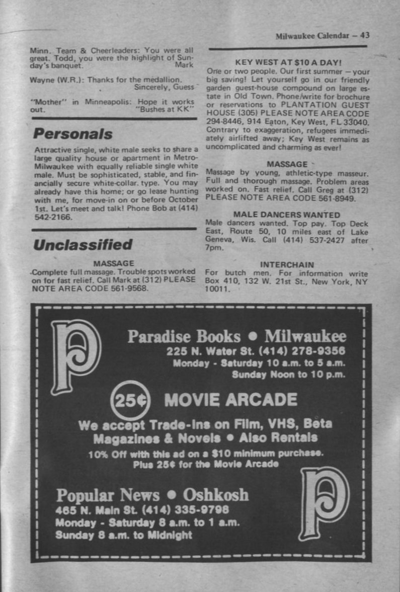 Personals & Unclassifieds + Advert for Paradise Books