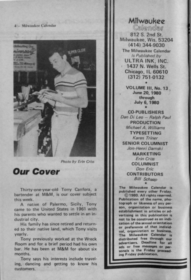 Cover subject: Tony Canfora of M&M + Masthead