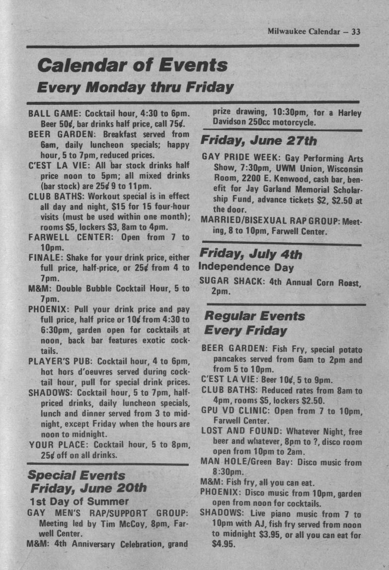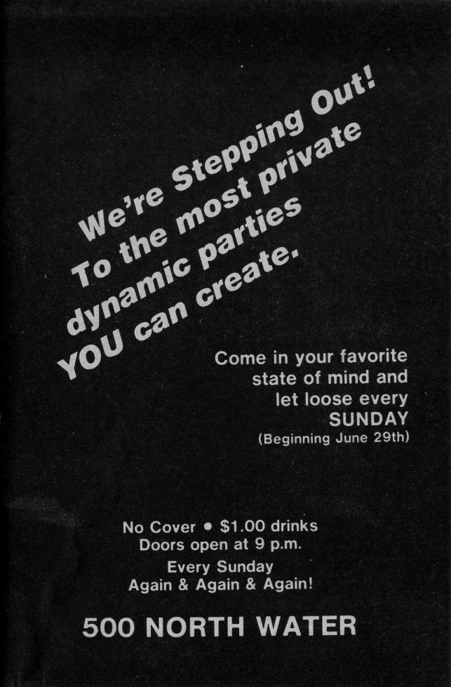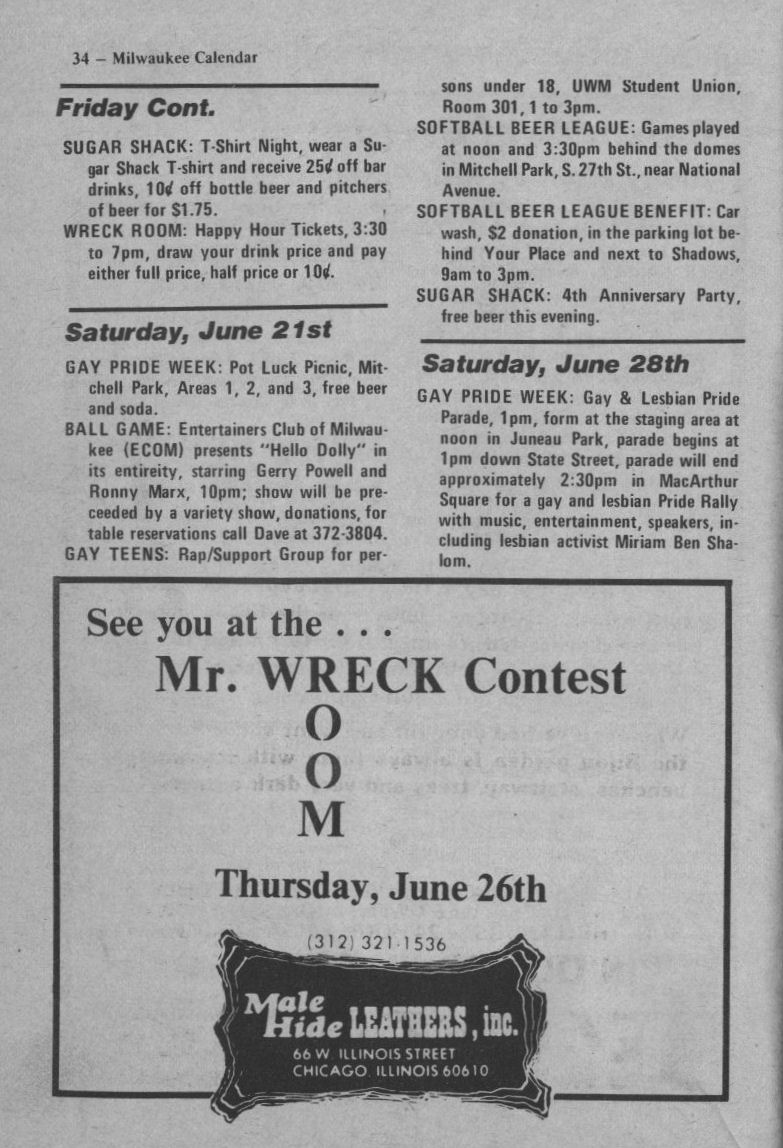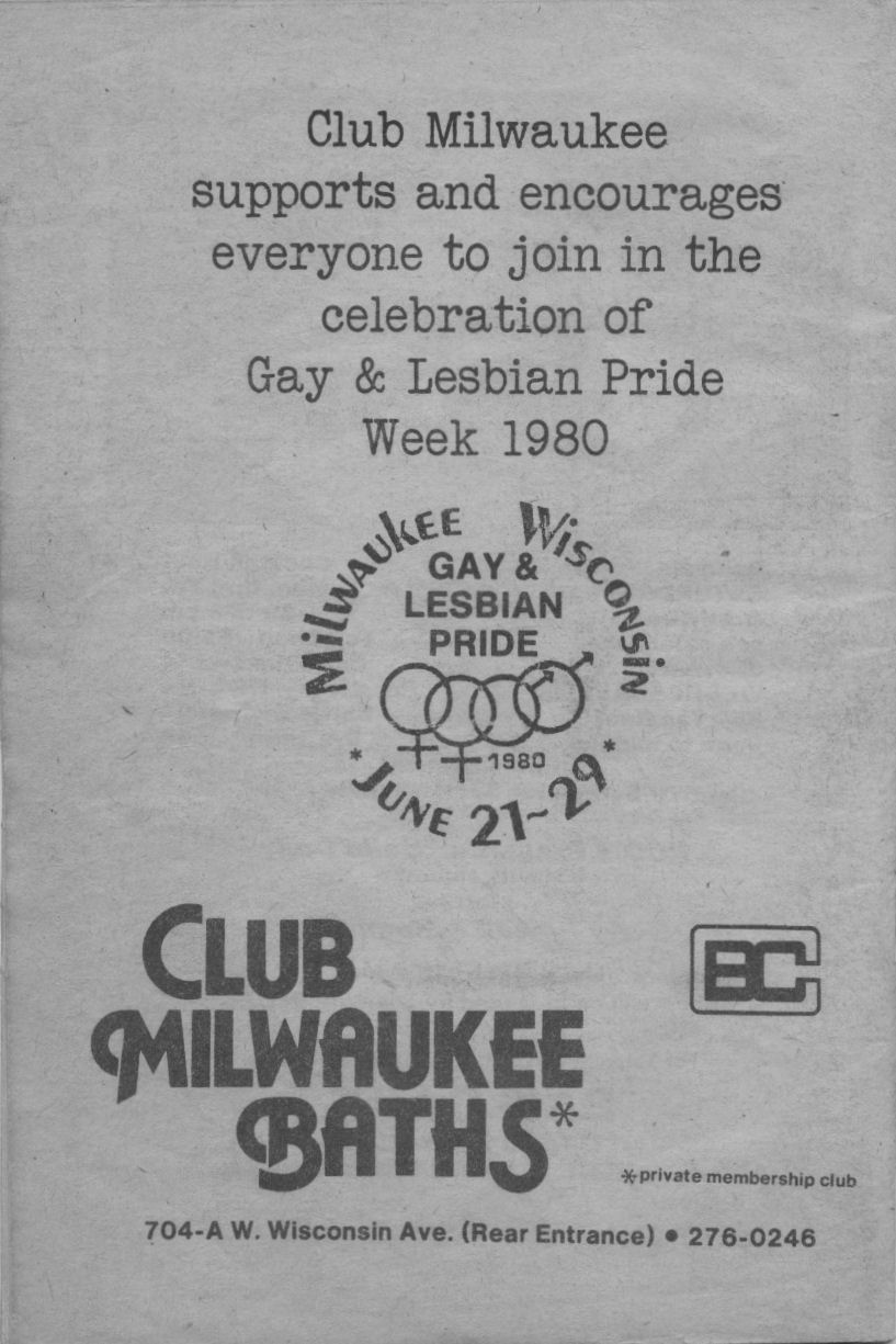 Ad: Club Milwaukee Baths encourages participation in Gay & Lesbian Pride Week 1980