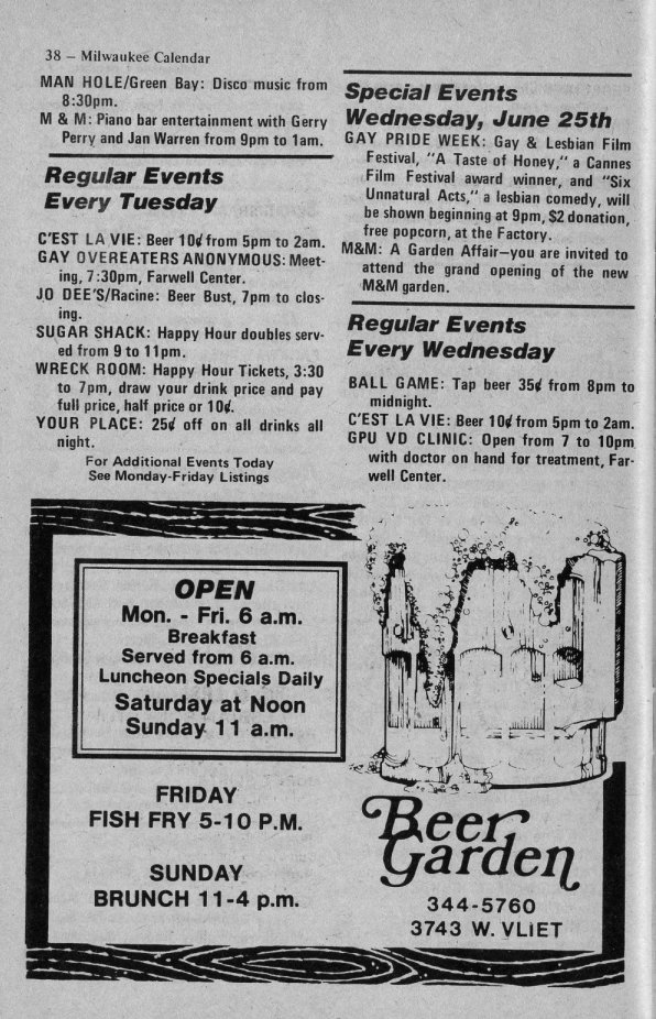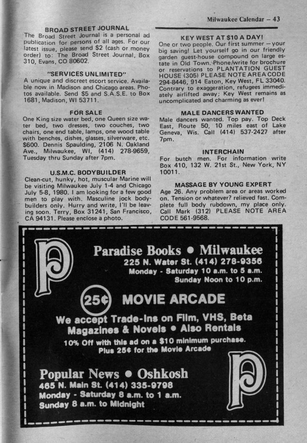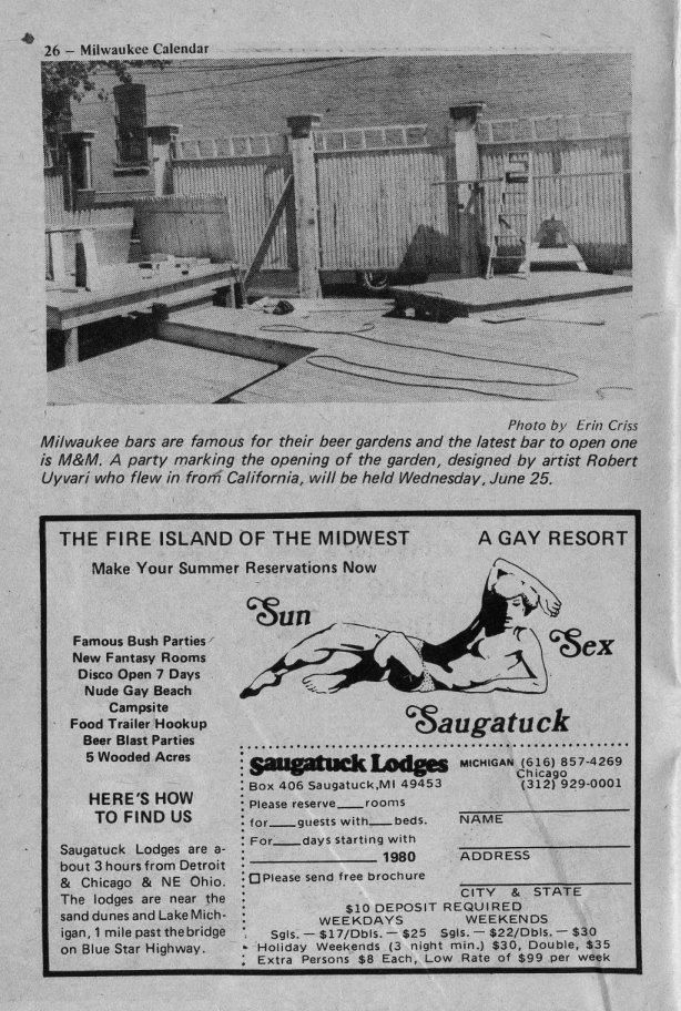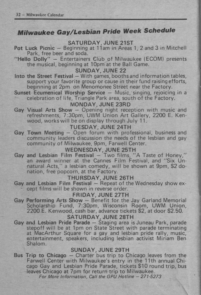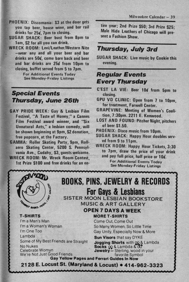 Ad: Club Milwaukee Baths encourages participation in Gay & Lesbian Pride Week 1980
