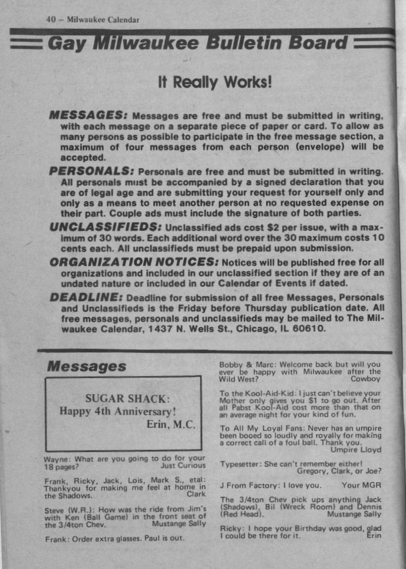 Gay Milwaukee Bulletin Board