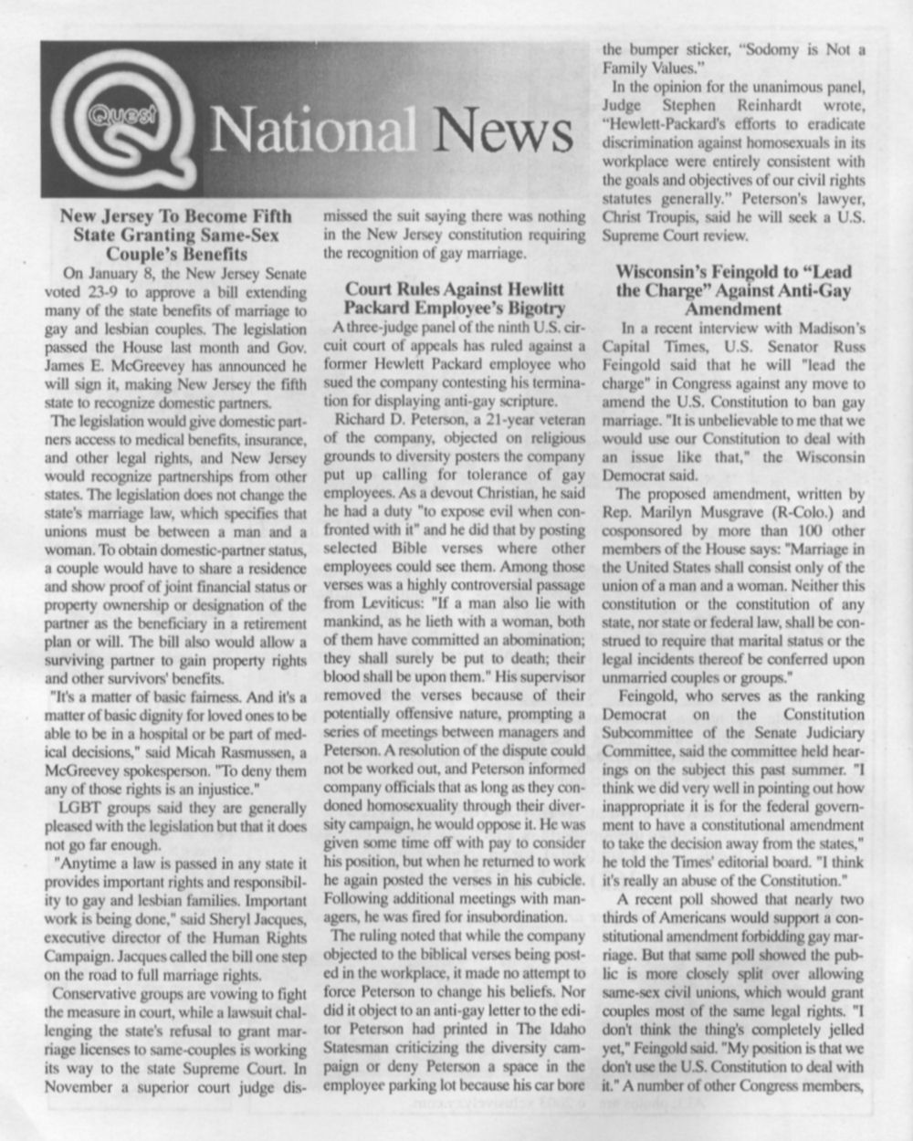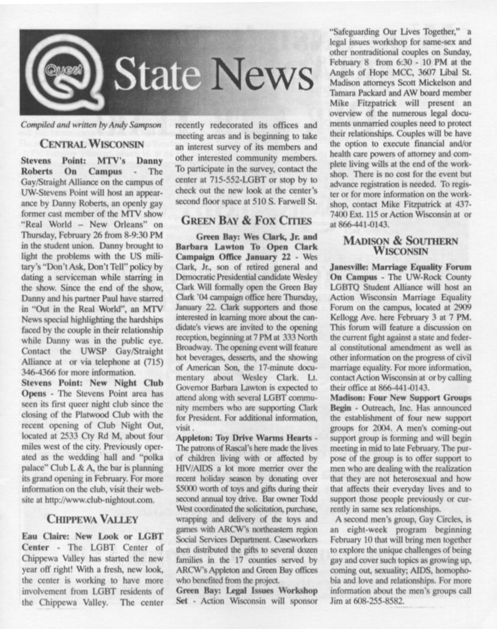 History of Gay and Lesbian Life in Milwaukee, Wisconsin - Print Media - Quest Magazine