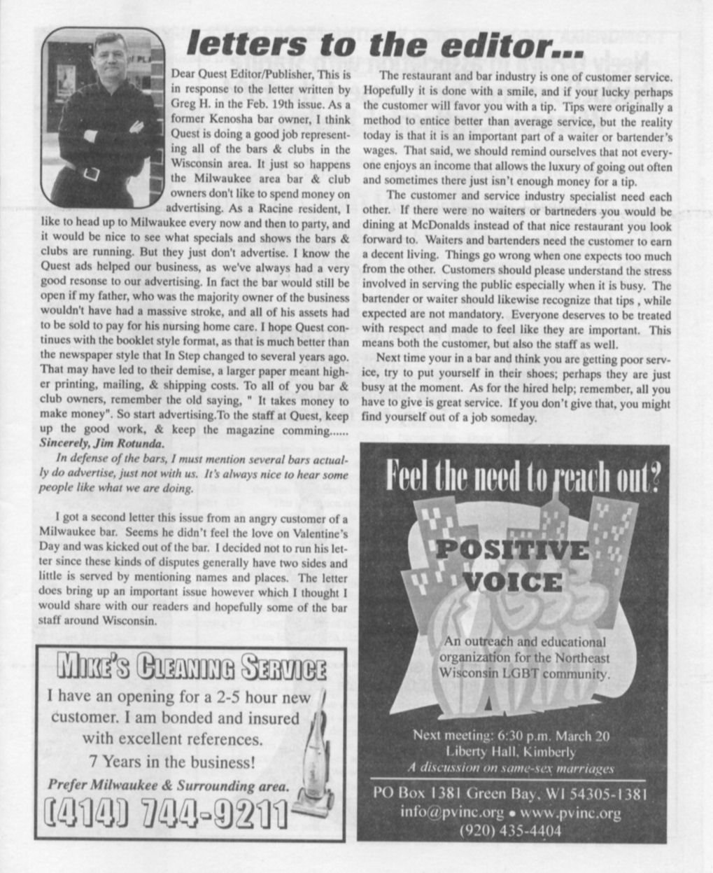 History of Gay and Lesbian Life in Milwaukee, Wisconsin - Print Media - Quest Magazine